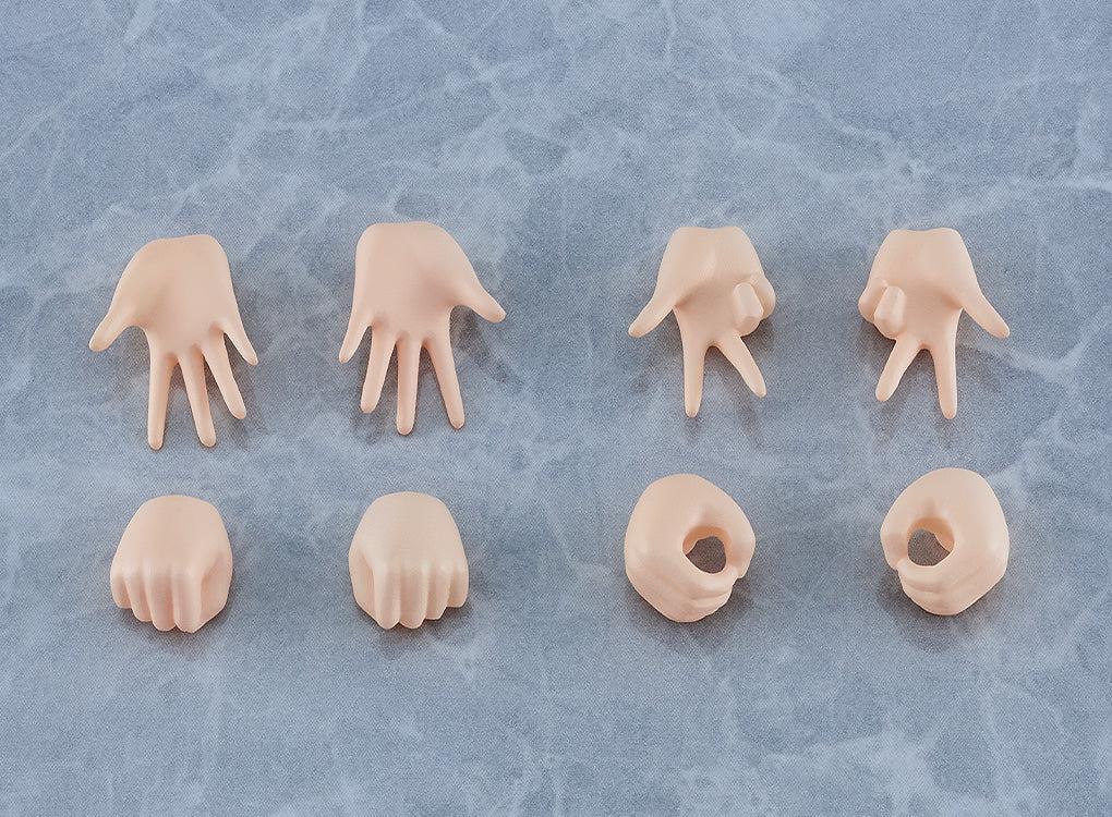 ・手首パーツは「握り手」「平手」「ピース手」「持ち手」の4種が付属。