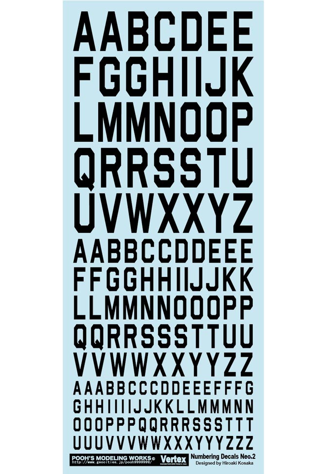 アルファベットデカール登場!●ナンバリングデカールネオに組み合わせられるフォント、サイズ。