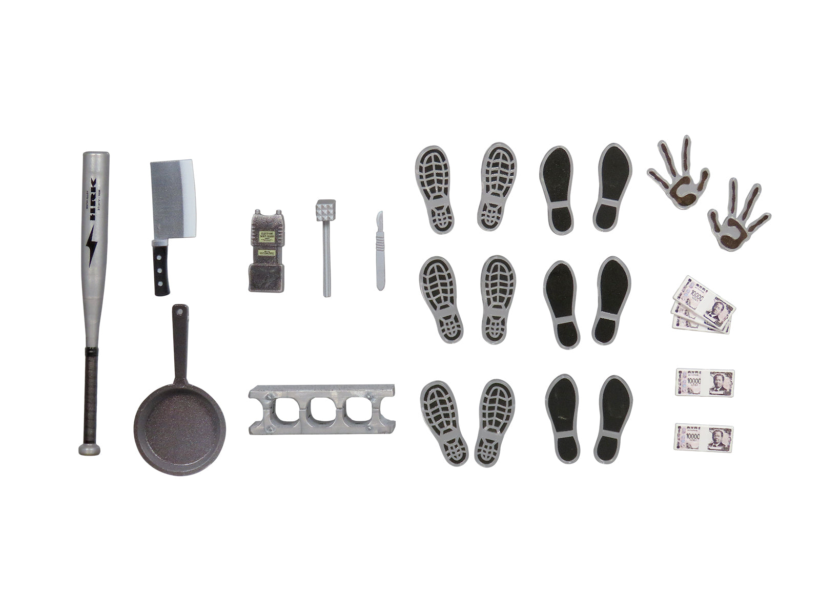 メーカー ディーアイジー シリーズ プリプラ 材質 ABS 付属品・内容物 金属バット、フライパン、中華包丁、スタンガン、ミートハンマー、メス、コンクリートブロック、下足痕エフェクト2種、宇宙人の痕跡、札束2種 JAN 4580614271943