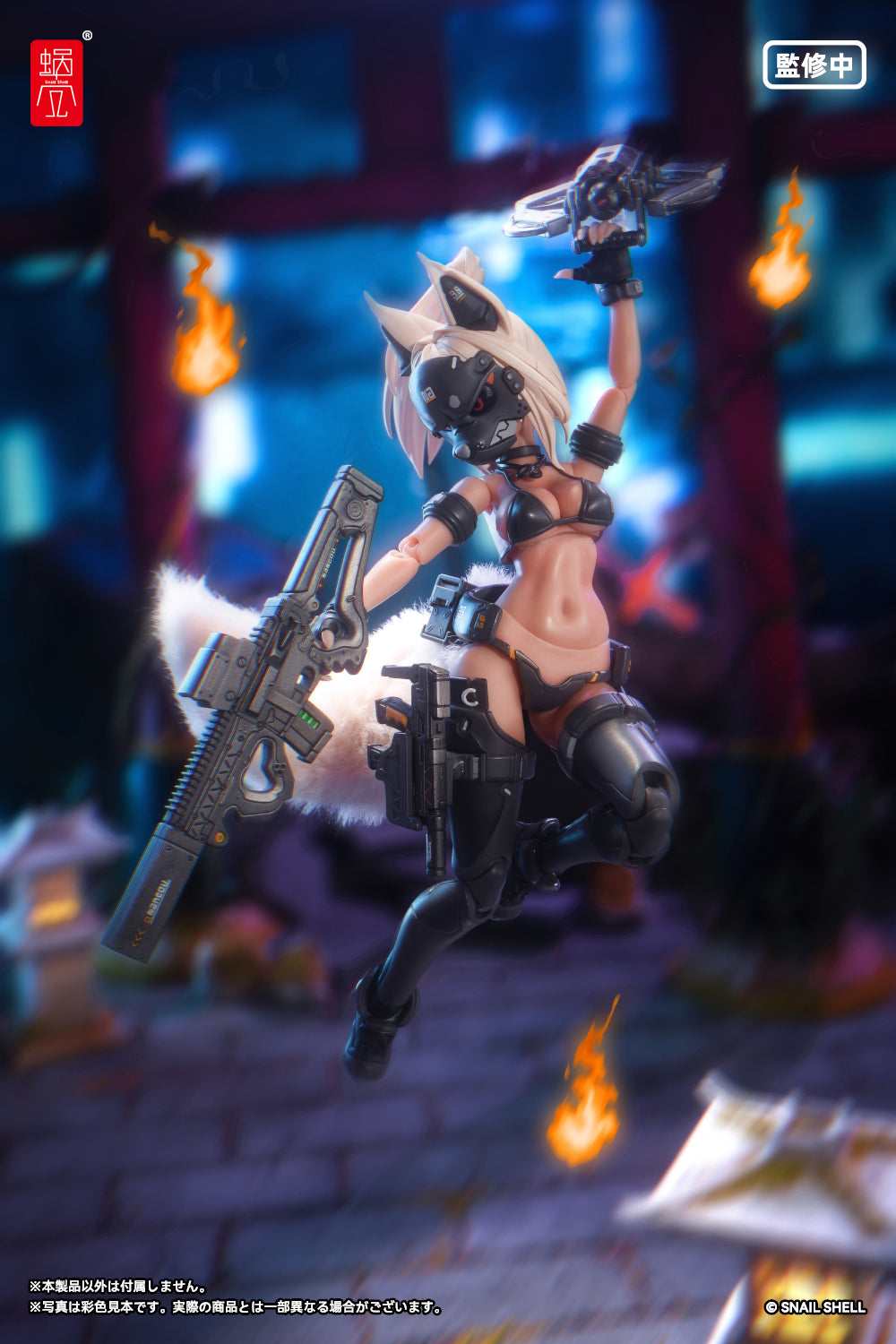 メーカー 蝸之殼Snail Shell スケール 1/12 材質 PVC/ABS/POM/マグネット 付属品・内容物 フィギュア本体×1 フル可動眼球付フェイスパーツ×2(微笑み、口開け 本体装着分含む) 付け替え用前髪パーツ×1(タクティカルマスク付き) 視線替え用ミニツールNEO×1 付け替え用ハンドパーツ×6セット(本体装着分含む) プライマリーウェポン『狐火 KITUNEBI Mk.1』×1 セカンダリーウェポン『狐福 KITUNEBUKU Mk.1』×1 ドローン『狐眼 KITUNEME』×2 ホルスター×1(マグネットで着脱可能) ドッグタグ×1 モフモフ尻尾×1 蝸之殼専用スタンド台座セット×3 JAN 4902273510469