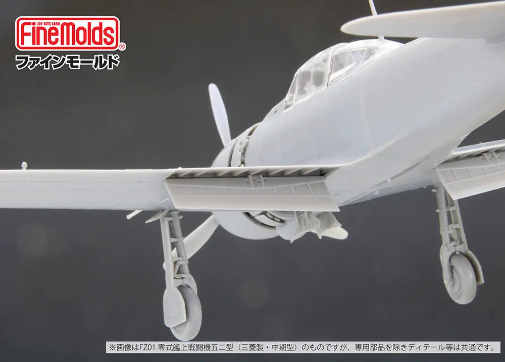 キットはこの三菱製零戦と中島製零戦の違いを丁寧に再現。また特徴として、キャノピーの窓枠とガラス部分を別パーツとし、クリアパーツの塗り分けが容易な構成としました(通常の一体型成形のキャノピーも付属します)。さらに実機の構造同様に胴体を前後に分割することにより、航空機プラモデルでは標準的な胴体左右割りを廃止し、丁寧に行うべきパーツ接合ラインの仕上げ作業を不要にし、作りやすく精密なプラモデルを目指しました。完全新金型。-