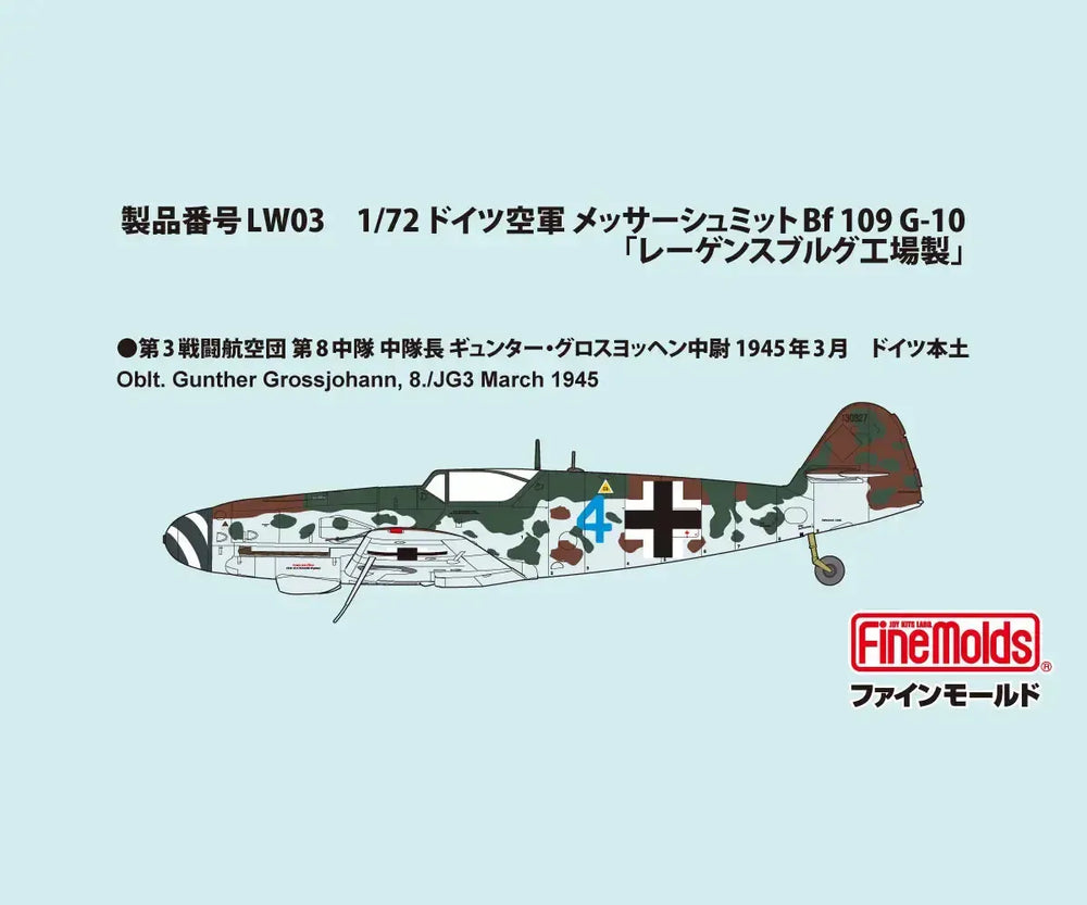 第二次世界大戦後半、連合軍が次々と新鋭機を投入するなか、ドイツ空軍の主力戦闘機として改良を重ね進化したのがメッサーシュミットBf 109 G-10型です。強化されたエンジンにより出力が向上したこのモデルには、大型過給機が搭載され、それに伴い左右非対称でゆるやかに膨らんだエンジンカバー、大口径化されたエアインテーク、そして従来より幅広なプロペラが採用されました。これらの特徴によって、G-6型と比べても機首の印象は格段に力強く、迫力ある姿に仕上がっています。