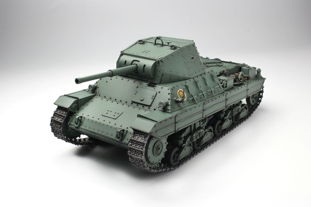 ガールズ&パンツァー、アンツィオ高校の秘密兵器、カルロアルマートP40型重戦車を再現した1/35スケールのキットに専用のアクリルキーホルダーをセット。