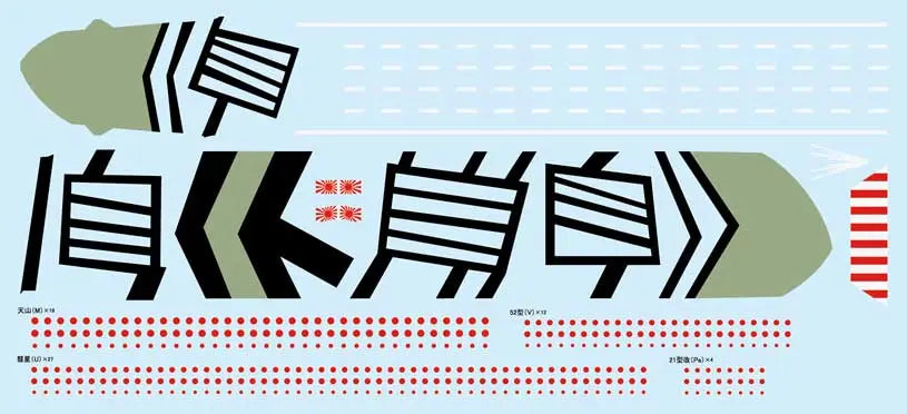 □デカールには飛行甲板の迷彩模様と艦載機のマーキング用デカール1枚。艦尾艦名や支柱の白線用デカール1枚の2種類が付属。