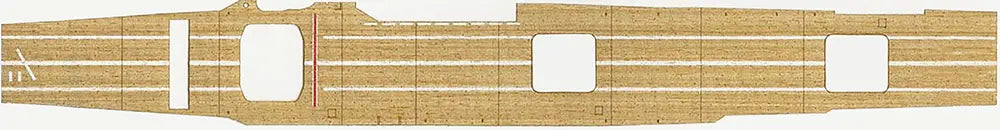 □塗装では表現が難しい木甲板の模様がリアルに再現できます。センターラインの白線や艦名表示が印刷されています。