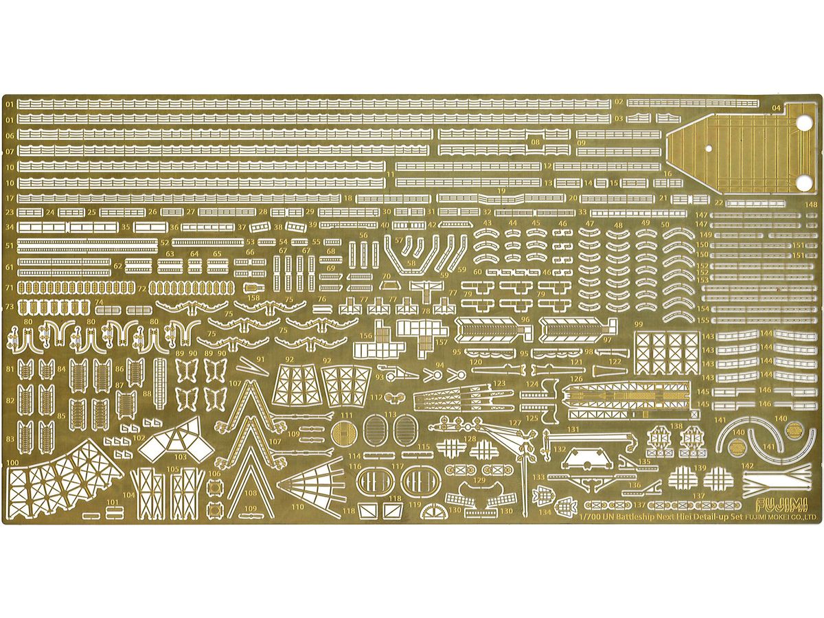 エッチングパーツには、手摺、ステップ、水密扉、ボートダビット、飛行甲板、カタパルト、クレーン、煙突周りの付加物、舷梯、トラス、ループアンテナなどを収録。-