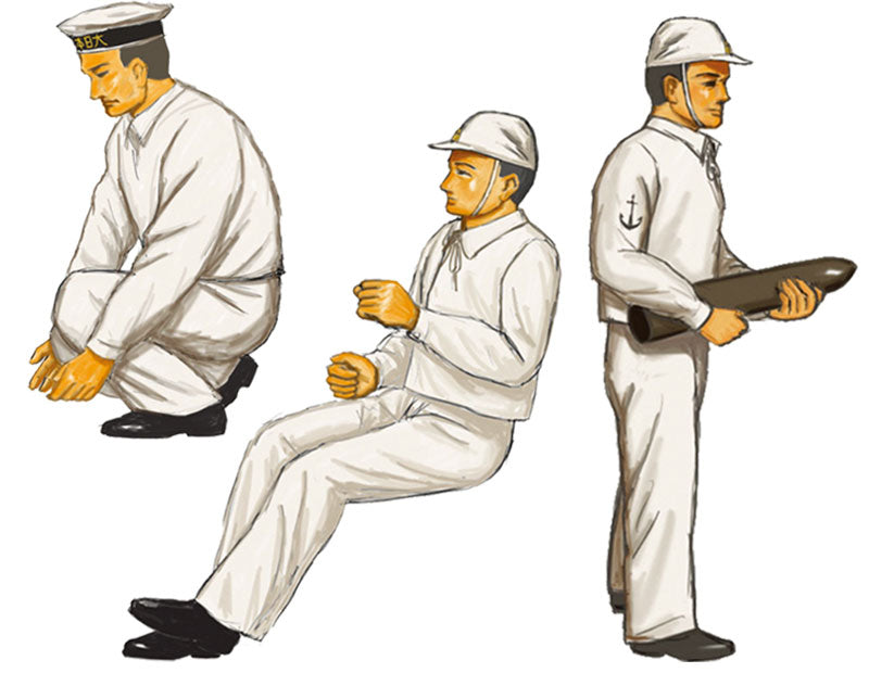 直立、敬礼、歩行、高角砲・機銃の操作、双眼鏡を覗く姿、弾薬を運搬する姿など合計11種類のポージングを再現できます。