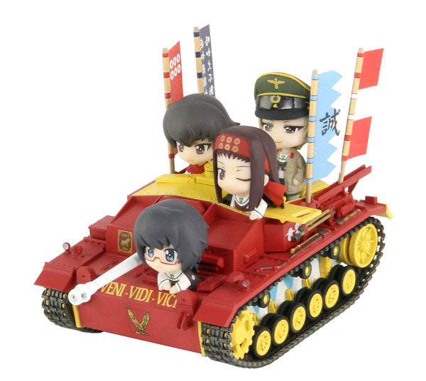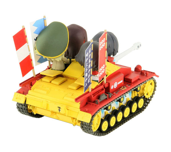 - 大洗女子学園の歴史好きの「カエサル」、「エルヴィン」、「左衛門佐」、「おりょう」の4名で構成された「カバさんチーム」のIII号突撃砲F型です。