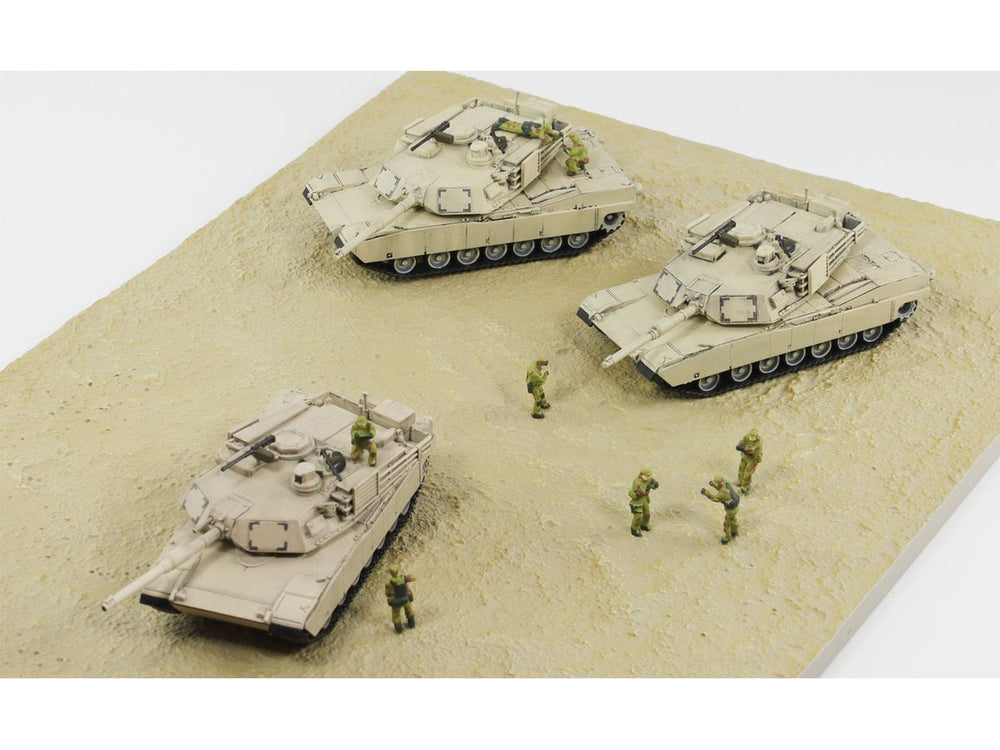 • 2003年の第2次湾岸戦争(イラク戦争)に展開したアメリカ陸軍第1機甲師団に所属するM1A2エイブラムス戦車の集結シーンをイメージしたジオラマセットです。