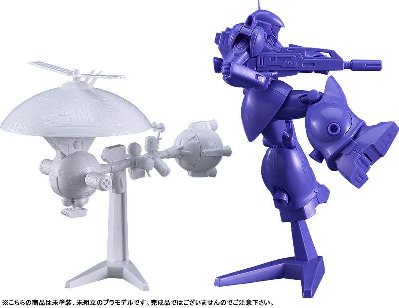 固定モデルならではのポージングと手のひらサイズのヴィネットが心地良いminimum factoryのメカニックモデルに、アニメ『銀河漂流バイファム』より地球側のラウンドバーニアン「トゥランファム」と少年少女たちの家でもあり成長の場として大きな役割を果たした外宇宙練習艦「ジェイナス号」がラインナップ!ふたつのモデルはそれぞれの機体をイメージしたプラスチックカラーでパーツ化され、組み上げると両手撃ちポーズの「トゥランファム」と、精密な宇宙船プラモ「ジェイナス号」が出来上がります。組むだけでもプラモの楽しさを存分に味わえますし、塗装や改造などいろんな楽しさも広がります。