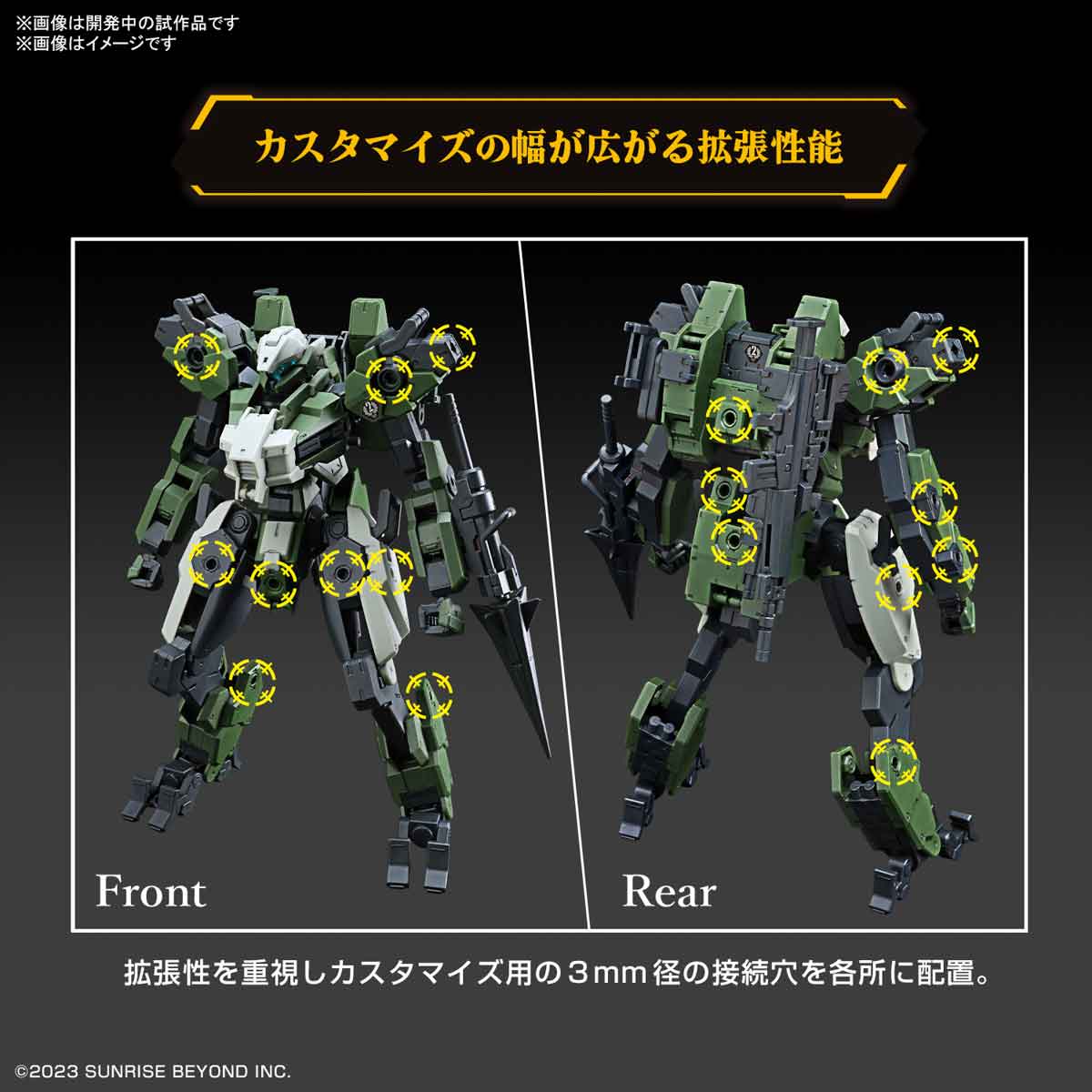 ■拡張性を重視しカスタマイズ用の3mm径の接続穴を各所に配置。別売りのウェポンセットシリーズと組み合わせればプラモデルオリジナルアレンジも可能。