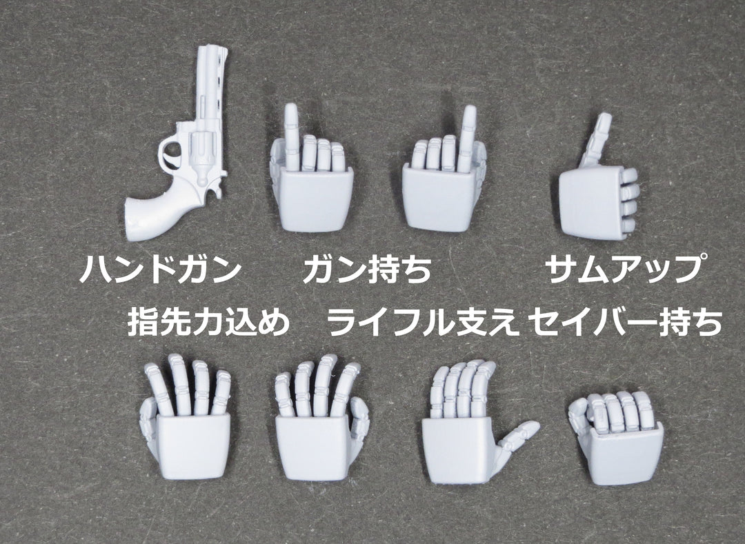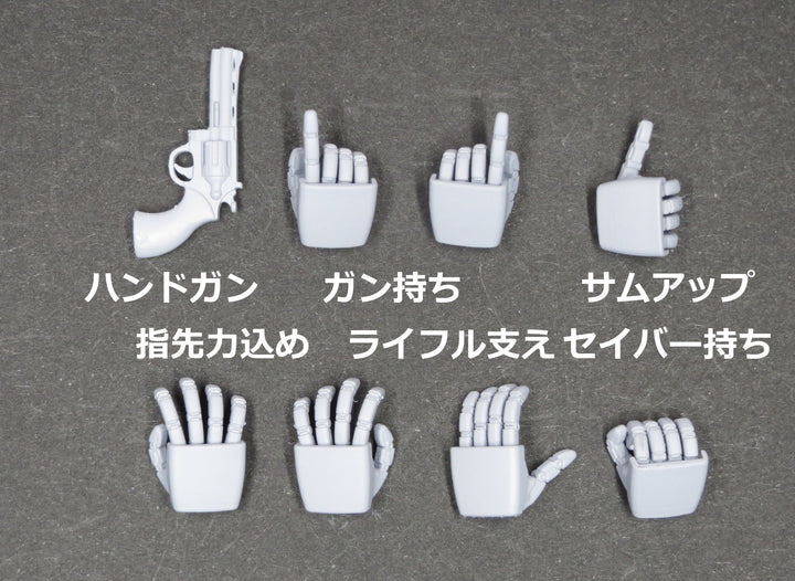 10種類13点のハンドパーツにハンドガンとボールジョイントがセットになっています。