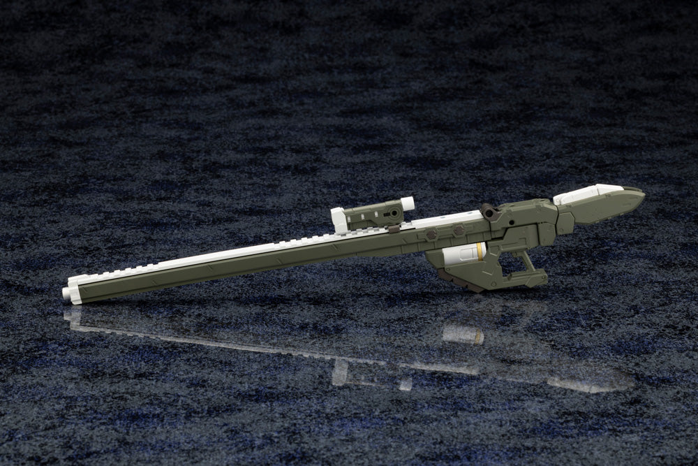 ブースターパック第9弾はヘキサギア史上最長となる約320mmの大型キャノンユニットです。成型色はシリーズ内で共通カラーの多いヘキサギアダークグリーンとなっており、ブースターパック007から010を使用する事で大型砲戦ヘキサギア「ブロッケード・アイビー」のダークグリーン仕様を組み立てる事が出来ます。