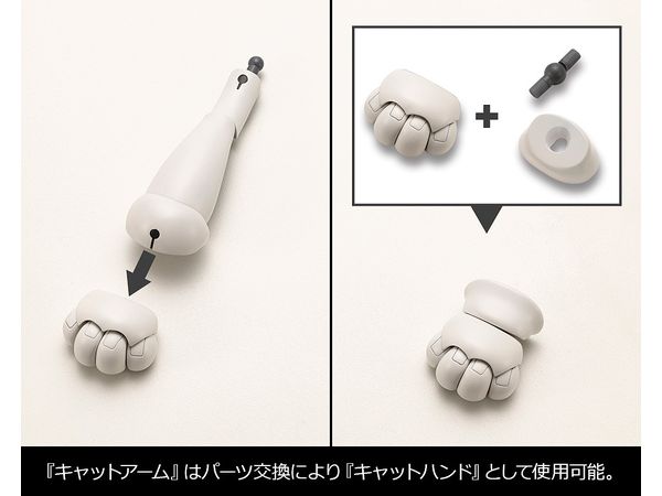 ■キャットアームは肩部のボールジョイントや3mm穴で『フレームアームズ・ガール』や『メガミデバイス』などに接続することができます。またパーツの組み換えによりキャットハンドとして使用することもできます。