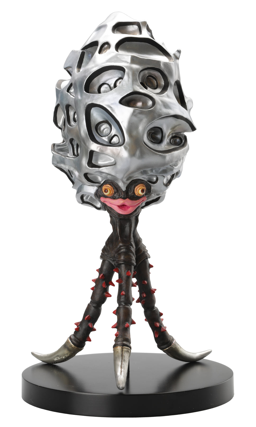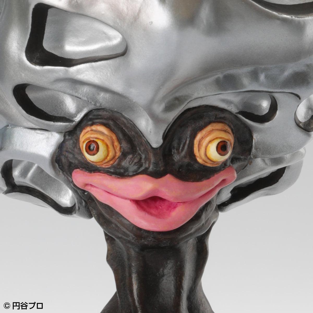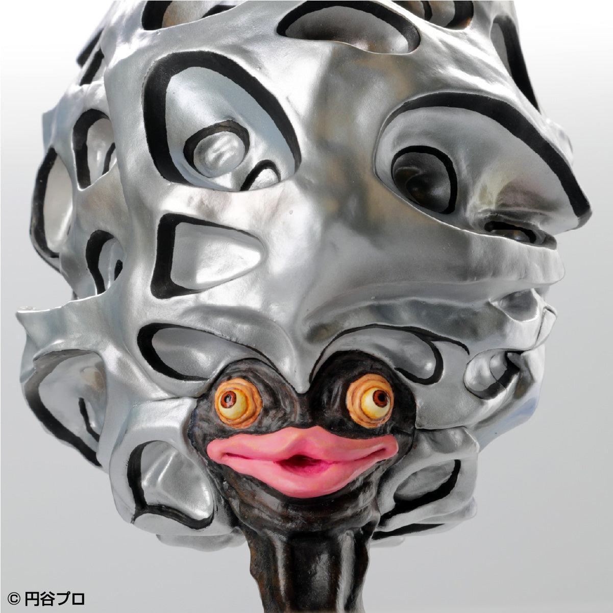 このチブル星人は「貝殻の抽象化」という大胆な発想からデザインされ、まさに「頭脳星人」と呼ぶにふさわしいその姿を、巧みな技術によって造形した傑作であり、特撮美術史における重要な作品のひとつです。