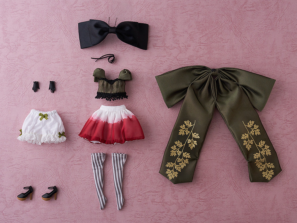 グッドスマイルカンパニーの本格ドールブランド「Harmonia bloom」より、儚さをまとうアネモネが登場です。短く切りそろえられたショートボブヘアに大きなサテンリボン、メイクはきりっとしつつも切なさを感じさせるアイラインやじわりとにじむような紅いリップを施し、妖艶で惹きつけられる印象の表情に仕上げました。ガラスの瞳は澄んだパープルとベージュのツートンカラー。衣装は深めのグリーンと赤を基調にビスチェと萼を表現したスカートをメインに据えました。さらに、真っ黒な手袋や模様を施した大きなバックリボン、ヒールシューズなどこだわりを詰め込んだ特別仕様となっています。切なくも美しい一輪をどうぞお迎えください。