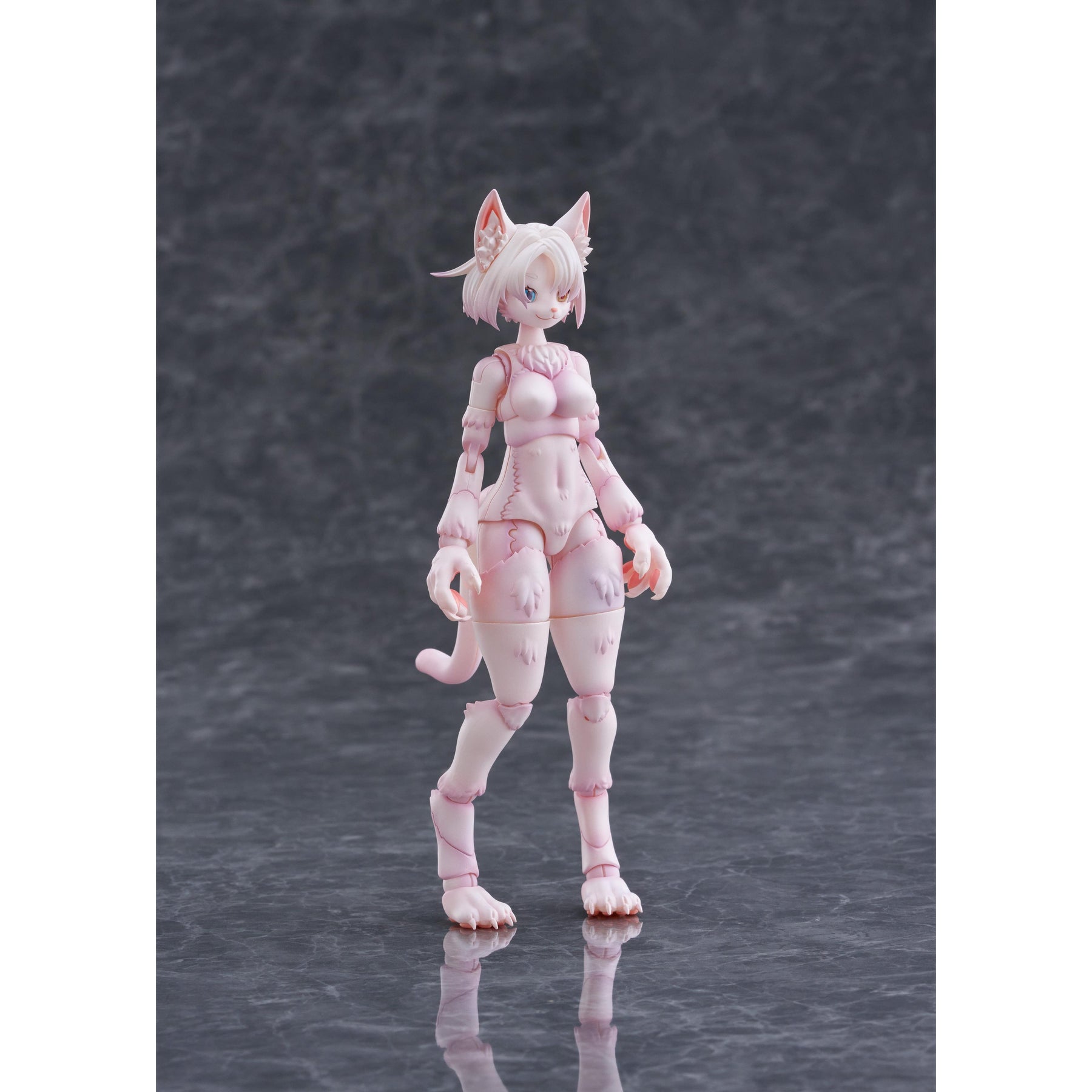 『けもプラ』は、自分好みのケモノを作れるカスタマイズプラモデルです。ケモノ要素・ヒト要素の割合を示すケモ度や、ケモノの種類などが、パーツ組み換えによって自由に調整できます。人とは違ったケモノならではのこだわりシルエットと、自分の理想を再現できる多種多様な組み合わせ方で、あなただけのオリジナルの世界観をお楽しみいただけます。カオマニーはタイ原産の猫で、「白い宝石」とも呼ばれる純白の毛と美しいオッドアイが特徴です。ボディはホワイト一色で成型され、前髪の隙間からのぞく凛々しい瞳は青色と黄色のオッドアイとなっています。