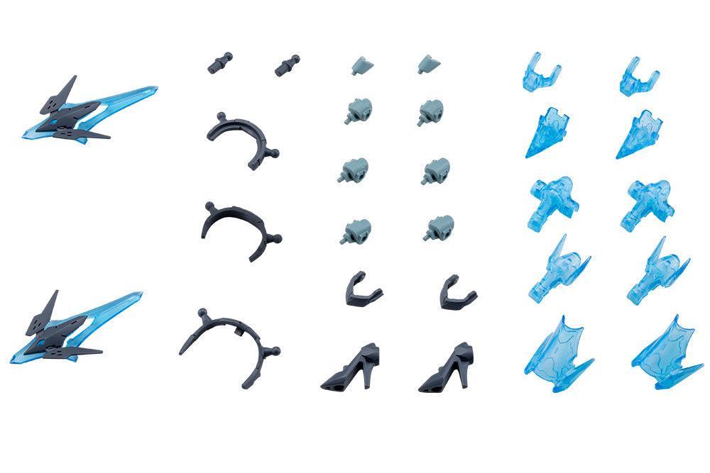 インナーヒールはさまざまなキャラクターの足首軸に対応した、2mm径、2.5mm径、3mm径の足首軸に対応したパーツが付属します。また、ホロニックアーマーを装着しない状態でもスタイリッシュなハイヒールパーツとして単体でもご使用いただけます。