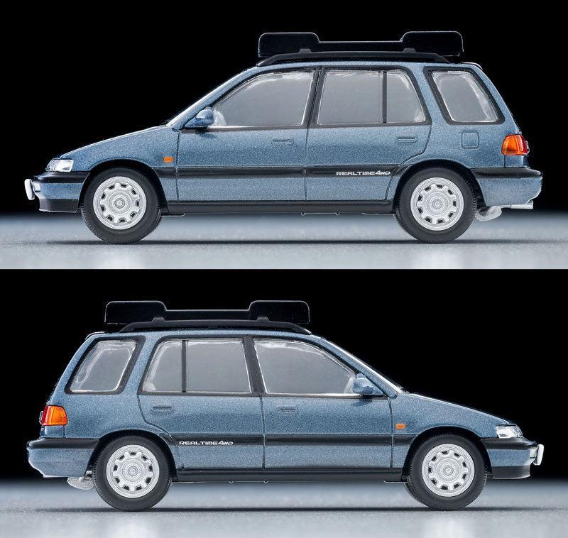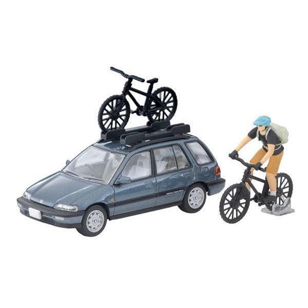 ③き続き採用。特にシャトルは4WDも設定され、当時としては珍しい、背の高いワゴンとして支持されました。TLV-NEOではすでに5ドアのシャトル、ビーグル、プロと展開しておりますが、今回はシャトルに新仕様の登場です。4WDのRTXをベースとし、ルーフキャリアには付属のマウンテンバイクを2台積載可能。付属のライダーのフィギュアと合わせて、アウトドアシーンをお楽しみただけます。