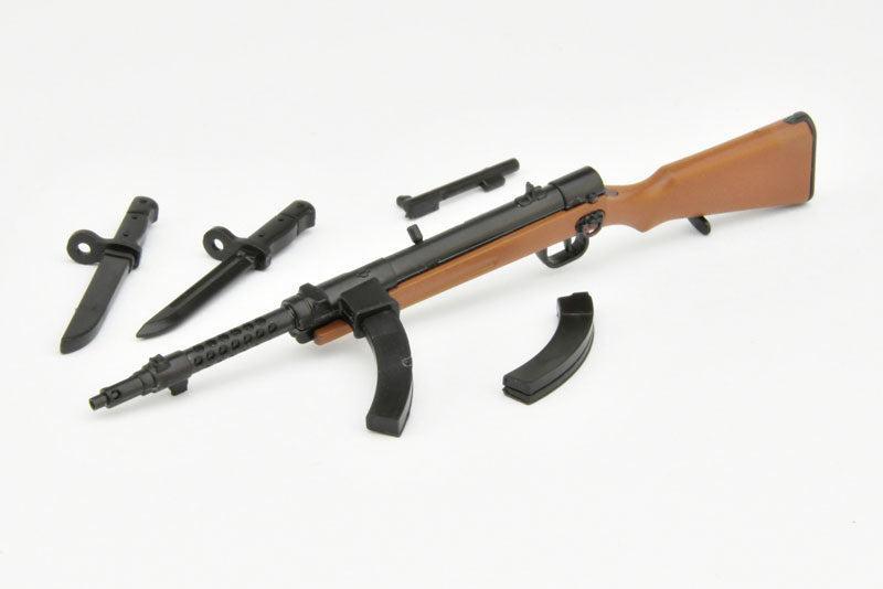 リトルアーモリーでは、この一〇〇式機関短銃〈後期型〉を1/12スケールで立体化。遊底(ボルト)の開閉選択に対応し、二式銃剣の有無も選択可能。別売の「三八式歩兵銃」に付属する三十年式銃剣を装着することもできます。- ◆ 日本火器のオリジナリティを精巧にモデリング