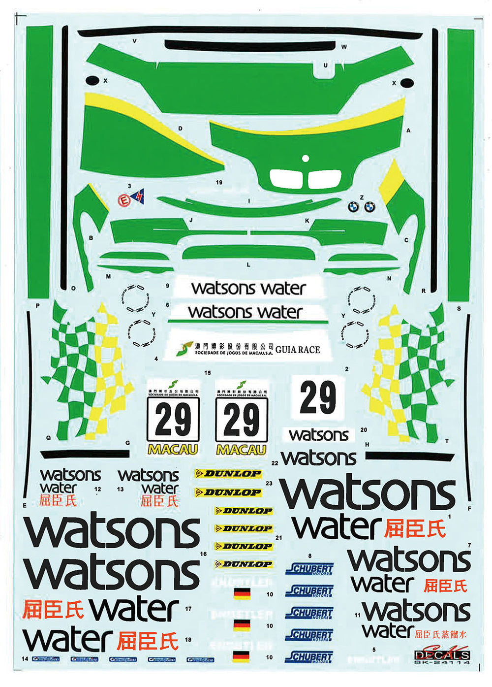 モデルは2001年のオランダのツーリングカー選手権、DTCCでトム・コロネルがドライブして優勝したマシン、BMW320i・E46を1/24スケールで再現したプラスチックモデル組み立てキットです。シンプルでベーシックなボディスタイルを実感たっぷりにモデル化。このキットでは2002年のマカオ ギアレースにドイツのチーム・シューベルトがエントリーし、フランツ・エングストラーがドライブしたカーナンバー29のマシンのカラーリングを再現するデカールをセットしています。香港に本部を構えるボトル入り蒸留水メーカー、ワトソンズ・ウォーターのロゴや塗り分けがキットとは異なるイメージの仕上がりを楽しめます。もちろんキットの室内はロールケージやバケットシートに各種機器、ダッシュボードなど、レーシングモデルの雰囲気を的確に伝えます。シャーシ下面もフロアパネルのディテールやエキゾーストの取り回し、サスペンションアームなど、立体感あふれる表現が見逃せません。-