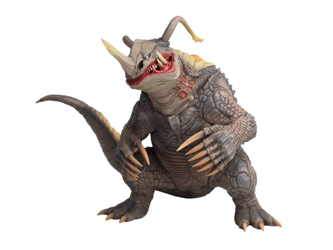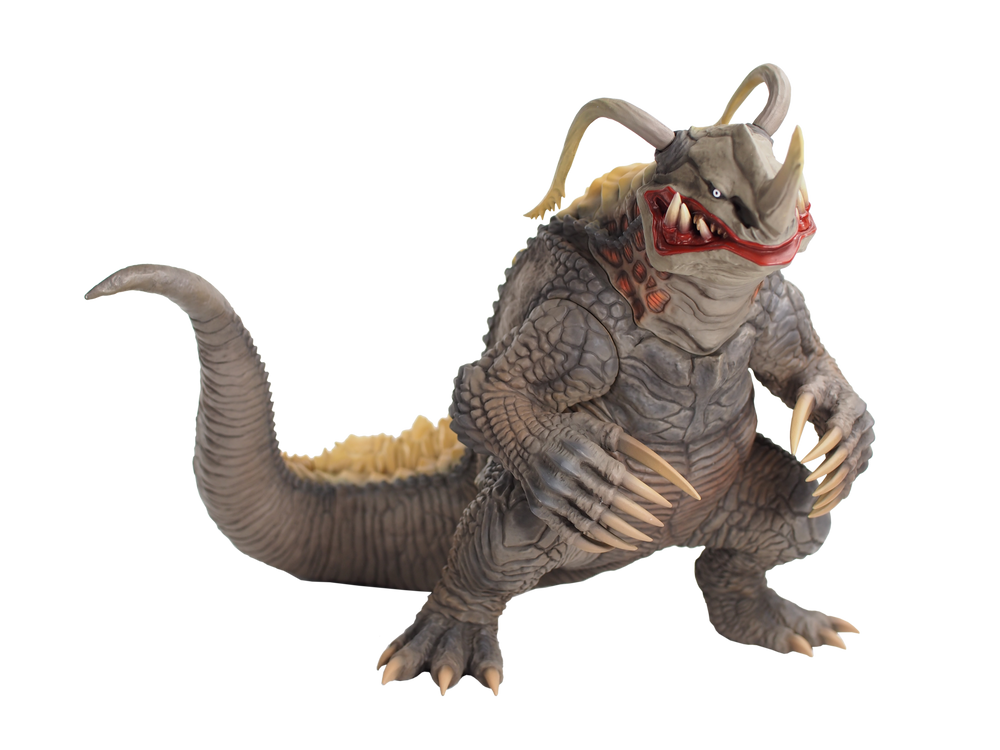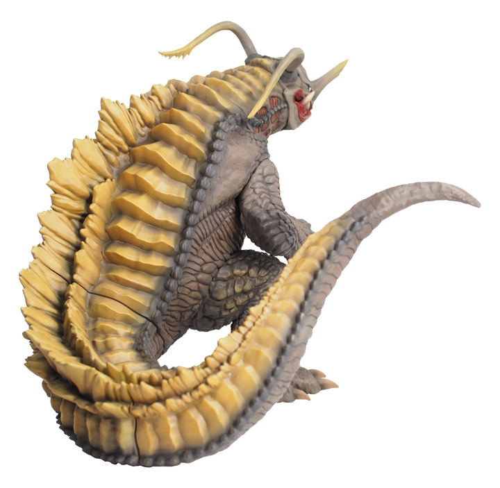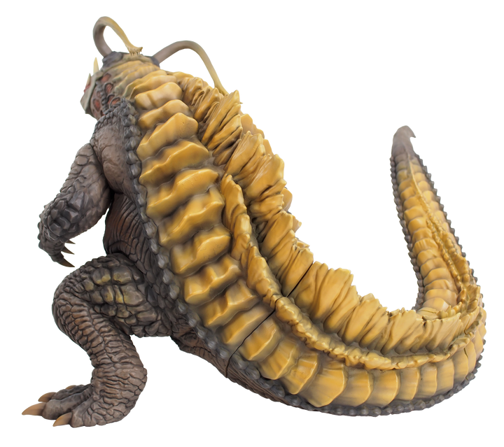 全高約30㎝、全長約40㎝の圧巻のボリュームと、尻尾を大きくうねらせた躍動感あるフォルムは迫力満点。頭のツノを可動させ、劇中と同じく光線ポーズを取らせることも可能。
