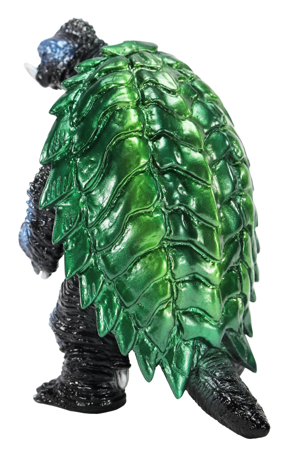 ガメラ3本来のカラーをメタリックへと落とし込んだ色をベースとしつつ、さらにメタリックブルーをを追加したボディカラーに仕上げています。ガメラ3特徴とも言える鋭利な甲羅は、2色のメタリックグリーンを用いて鮮やかに彩色されています。