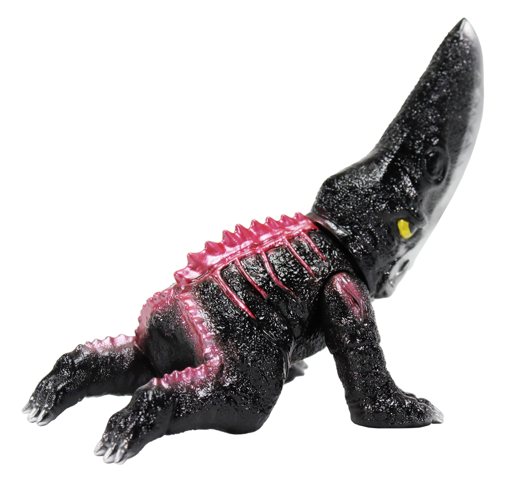 『ガメラ対大悪獣ギロン』公開当時のポスターで黒く描かれていたイメージなども参考とし、今回のブラックカラーが誕生。黒いボディに、ギロン本来の塗り分けである赤い背中のラインはメタリックレッドにて彩色されています。