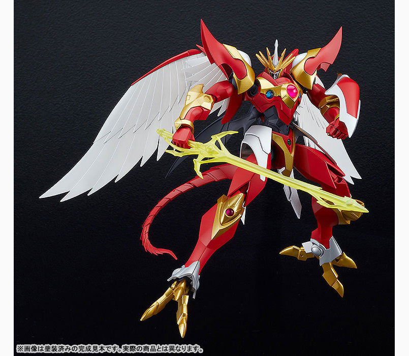 究極の魔神、MODEROIDで初プラキット化!各部にクリアパーツを使用し、アニメさながらのプロポーションで造形されたスタイリング。設定同様3魔神よりひとまわり大きいサイズとなっており、ウインダムの主翼やセレスの副翼・尾の造形も再現。オプションはクリア成型された「閃光の剣」をはじめ交換用手首・盾が付属。更に主翼はTVアニメ後期デザイン版再現用の翼と交換可能!有機的なシルエットと、高い可動域によるしなやかな翼の動きを実現しています。各成形色と一部彩色済みパーツにより、組み立てるだけでイメージに近い色分けを再現できます。-