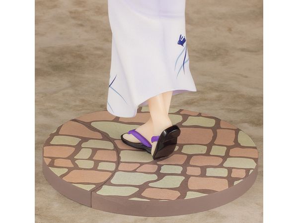 薄いブルーの浴衣に身を包み、こちらを振り向く姿を手元のりんご飴や髪飾りなど細部まで丁寧に造形しました♪