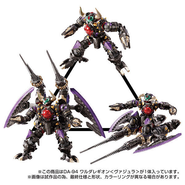 巨大なウイング/破壊兵器や手足のユニットパーツ等で構成されたド迫力の最終形態モードは、シリーズ第一弾、ワルダレギオン<リッパー>を凌ぐボリュームを実現。最終形態時の全高は最大約21cm、全幅は最大約38cmとなる。手足等のユニットの接続パターンで全高が可変し、各種ダイアクロンマシンサイズに対応する様々な敵メカを作る事が可能。