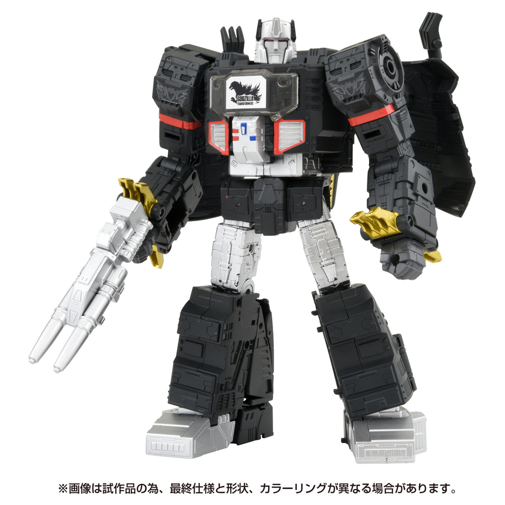 ディセプティコンのリーダー 破壊大帝「メガトロン」がゴジラの力でパワーアップした姿で登場!強大な力を求めて、地上最強の生物「ゴジラ」の力を手に入れたメガトロンの新たな姿を商品化。ゴジラの細胞からDNAをスキャンすることで、ゴジラの強力なエネルギーや肉体を再現したパワーアップ形態を再現。