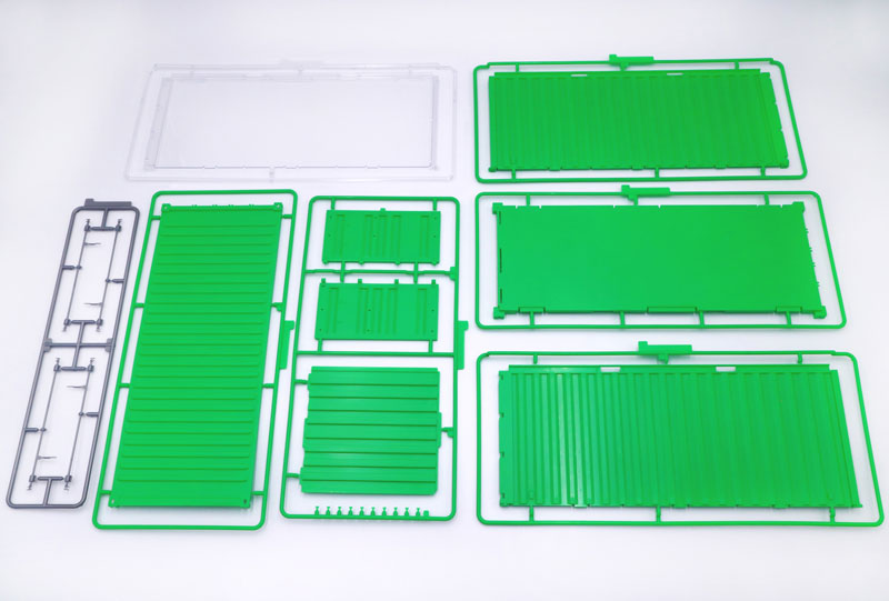□コンテナの壁面パーツに加え、サイドパーツにもディスプレイケース用に使用できる高透明度のクリアーパーツが付属。