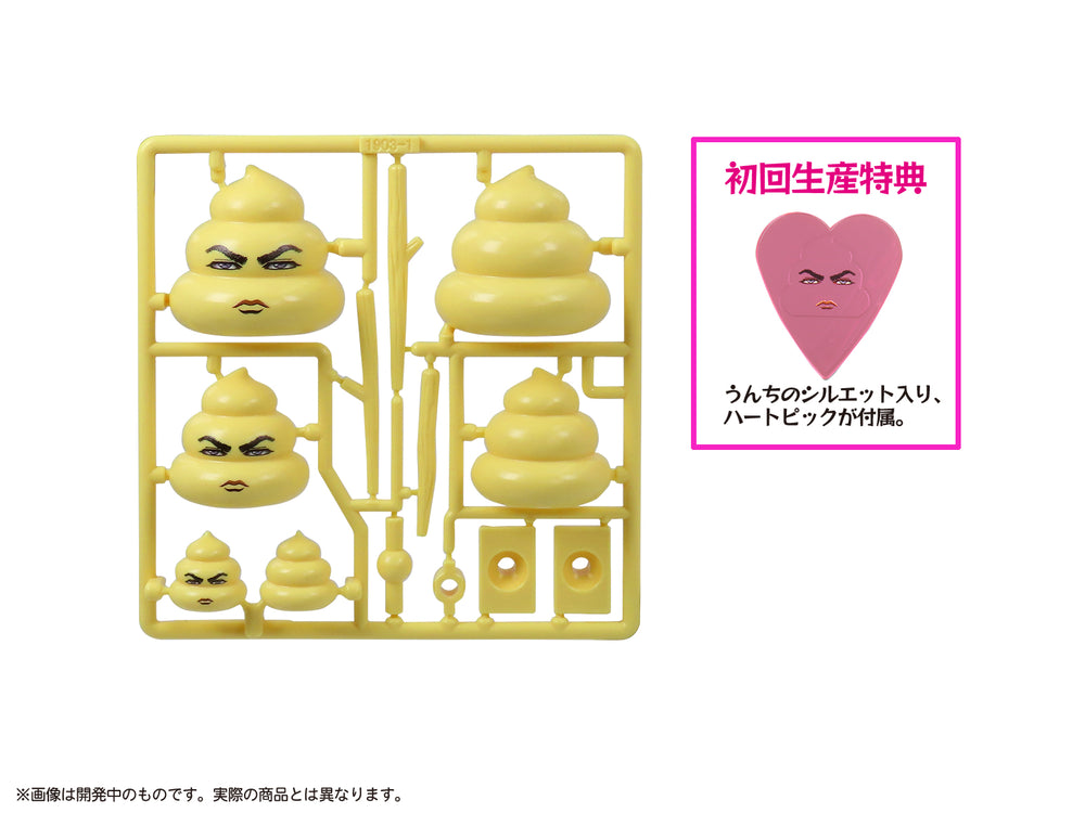 ピン径約3mmのジョイントパーツも付属。初回生産分にはうんちのシルエット入り、ハートピック付き!プリプラとは・・デジタルプリント×プラキット