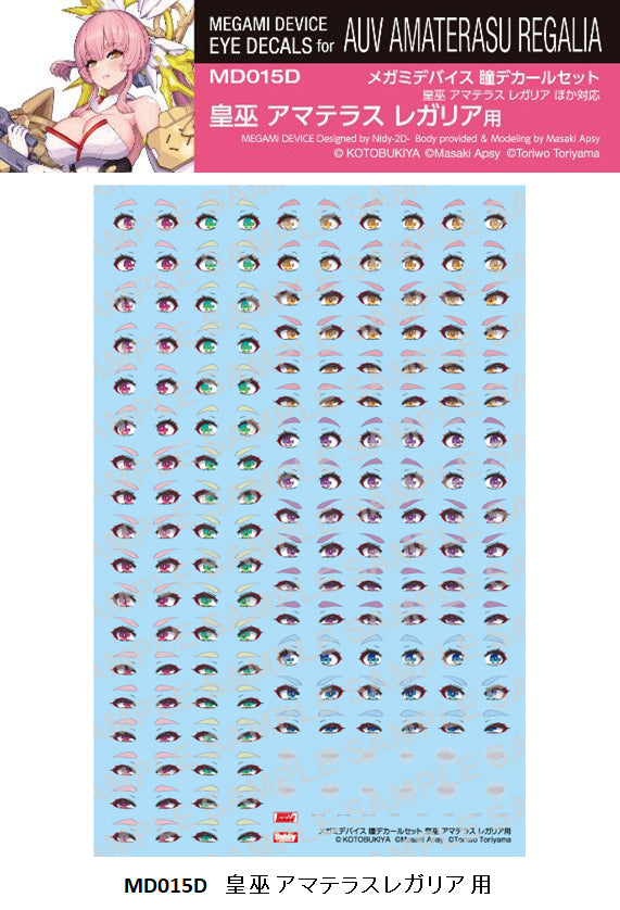 ホビージャパンが発売する「メガミデバイス 瞳デカールセット」は、浅井真紀氏による新型可動素体“マシニーカ”を採用した全高約14cmの可動美少女素体にウェポンやアーマーを装着して楽しむ(株)壽屋のプラモデル『メガミデバイス』シリーズ用の瞳デカールセット。商品第15弾として「メガミデバイス瞳デカールセット15 皇巫 アマテラス レガリア 用」、第16弾として「メガミデバイス瞳デカールセット16 皇巫 スサノヲ レガリア 用」が登場します。