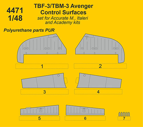 1/48 TBF-3/TBM-3 アベンジャー・動翼セット・アキュレイト/アカデミー