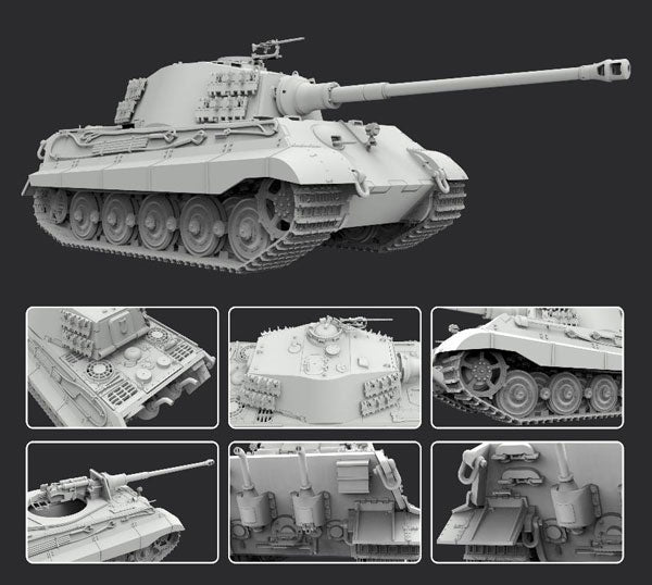 ティーガーIIの設計概念はティーガーIを踏襲して設計され、車体は更に重装甲、重武装が施されており、V号戦車パンターと同じ傾斜装甲が採用されました。
