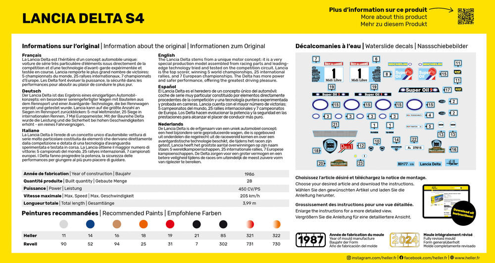 1986年WRCで活躍したランチア・デルタS4を1/43スケールで再現したプラスチックモデル組み立てキットです。