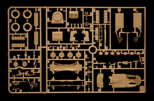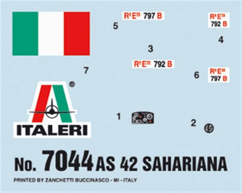 第二次世界大戦でイタリア軍がアフリカ戦線での作戦に必要として開発、運用した装輪偵察車がカミオネッタ AS.42サハリアーナです。アウトブリンダのAB40/41型4輪装甲車をベースにそのシャーシを使用して新しいデザインのボディが取り付けられました。オープントップの車体は前方の中央に操縦席が設けられ車体中央には用途に合わせて各種の重火器を搭載可能でした。足回りは4輪駆動、4輪独立懸架に大径タイヤを装備することで高い機動力を発揮。また、長距離・長時間の移動、活動を想定して飲料水や燃料缶を車体側面左右には20個,フロント左右に4缶など、大量に搭載できるようになっていたのも特徴です。1942年に生産を開始。北アフリカ戦線での活躍はもちろん、その後の各戦線で大戦を通して活躍したのです。モデルについて