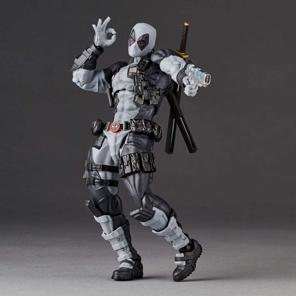 仕様 メーカー 海洋堂 シリーズ リボルテック 原作 (原作シリーズ) 『DEADPOOL』シリーズ 原型 山口勝久 材質 PVC・ABS・POM 付属品・内容物 付属品 ・オプションフェイス×3 ・オプションアイパーツ×10 ・オプションハンド×17 ・おもちゃ銃(A)×2 ・おもちゃ銃(B)×2 ・ホルスター×2 ・ナイフ(A)×2 ・ナイフ(B)×2 ・ナイフ用鞘×2 ・刀×2 ・鞘×2 ・鞘接続パーツ×1 ・釵×2 ・ポーチ×2 ・チミチャンガ×1 ・スマートフォン×1 ・ダイナマイト×1 ・ディスプレイスタンド×1 ※オプションパーツの数(種類)には、出荷時(標準)に取り付けられているものを含みません JAN 4537807220516