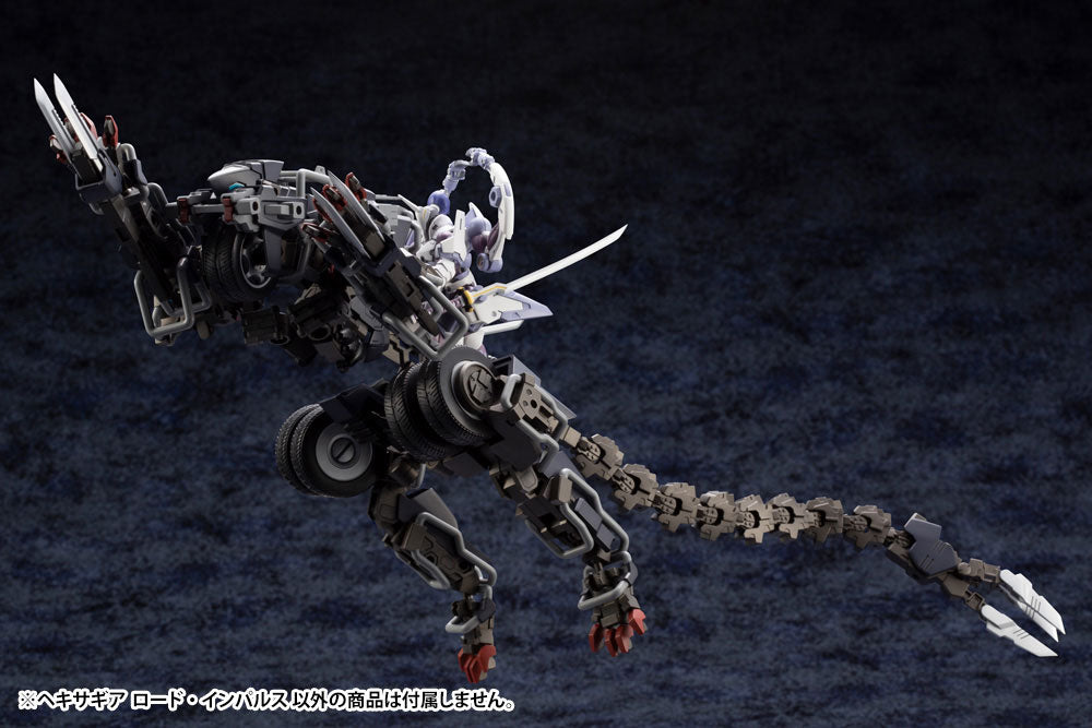 ロード・インパルスはアースクライン・バイオメカニクスが開発した第三世代ヘキサギアである。レイブレード・インパルスの原型となった優秀な量産機で、同一のフレーム構成と装備品の大半が共通でありながらもこちらは汎用性に優れた機体となっている。アースクライン・バイオメカニクスでは当初、ボルトレックスとロード・インパルスの2機種の開発・製造計画を立てていたが、SANATによるMSG掌握に続く混乱の中でボルトレックス製造を委託した工廠を失い、リバティー・アライアンス結成に伴う主力戦闘ヘキサギア調達計画にはロード・インパルス1機種で臨むことになった。