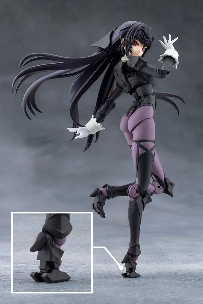 ミリタリーゴシックをテーマにデザインされたスカートパーツは僅か0.2mm以下の極薄のシート素材を使用しているため、アクションポーズ時に可動を阻害しにくいものとなっています。