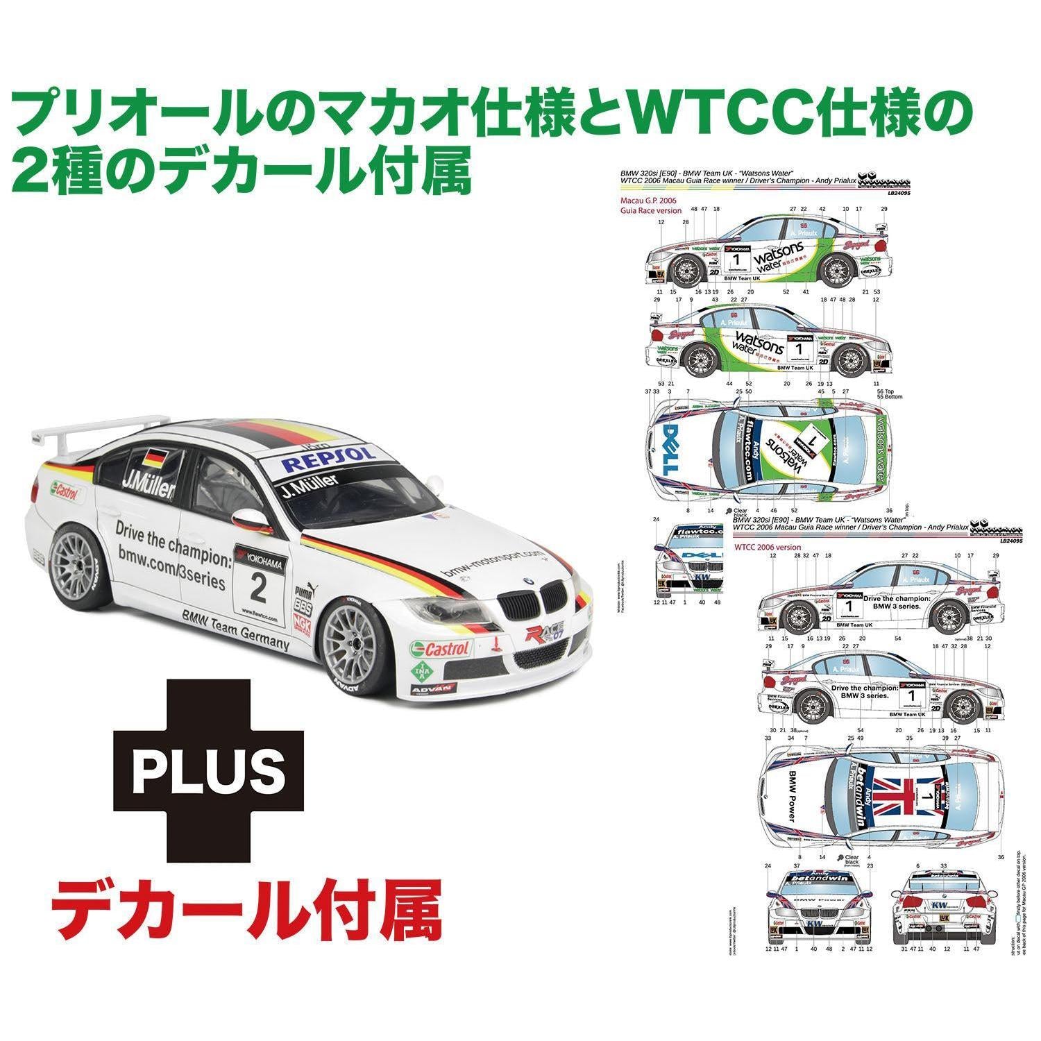 ●2006年WTCCドライバーズチャンピオンを記念したマーキングとマカオギアレース優勝時のBMWチームUKのカーナンバー1のマシンのマーキングを再現するデカールをセット