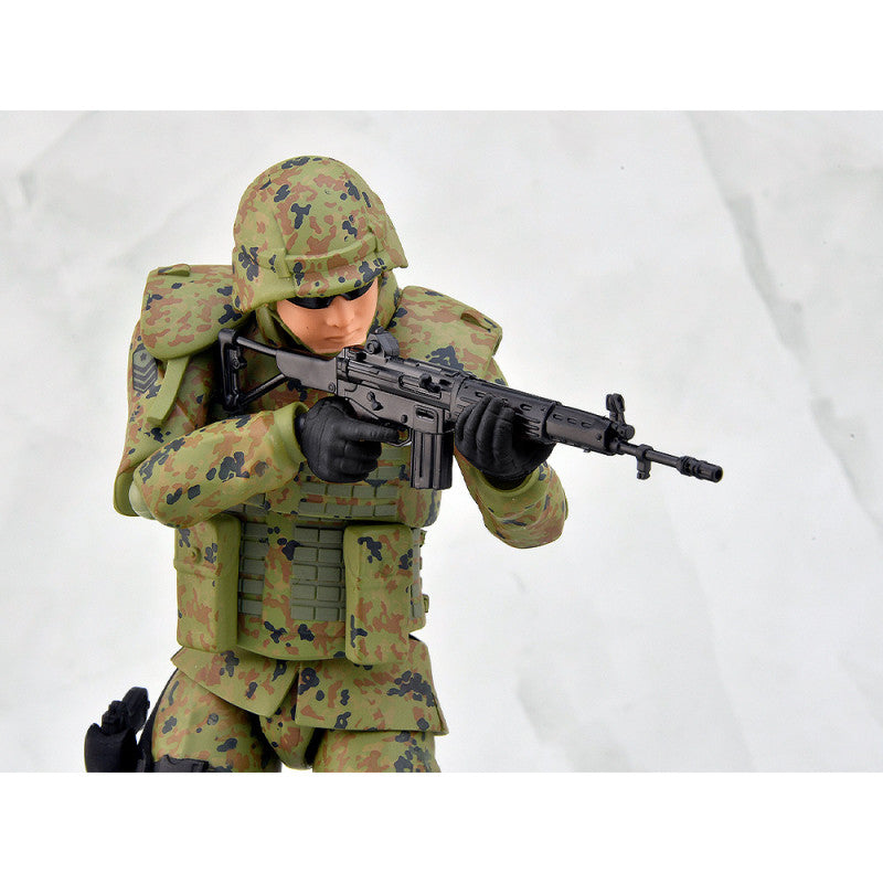 今作は、従来品より大きな“Lサイズバージョン”です。リトルアーモリーfigma自衛隊員のハンドパーツに近いサイズ感で、極小球体状関節に合わせた2mm軸径仕様となっています。PVC製のハンドパーツは「掴む、構える、狙う」など、リアルな銃器のアクションに適した形状を左右4種類づつ用意。前腕部とグローブの接続補助用として角度固定式ジョイントランナーも付属。