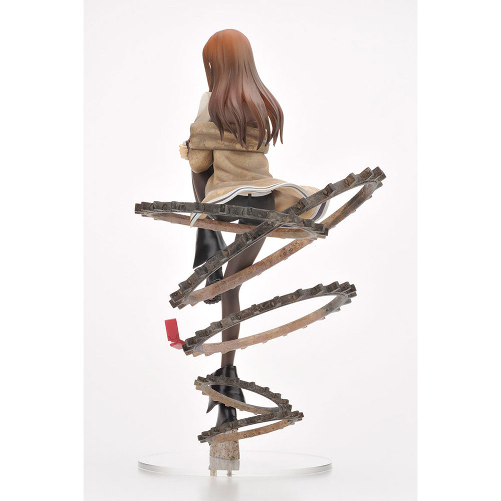 18歳にして飛び級で大学を卒業し、若くして、かのヴィクトル・コンドリア大学脳科学研究所の研究員になった「才女」にして「ツンデレ」の牧瀬紅莉栖が登場。Xbox 360版の「数量限定版パッケージ」のイラストをモチーフに立体化です。複雑に絡み合った歯車のベースに腰掛け、遠くを見据える紅莉栖。重力に逆らうような独特な「浮遊感」を持つこのフィギュア。幻想的な世界観を持つ本編「シュタインズ・ゲート」の雰囲気を忠実に再現する事を目指しました。また、紅莉栖の美貌は勿論の事、着崩したジャケットやネクタイの造型、ブーツ、壊れた携帯電話等、細部まで精密に立体化。