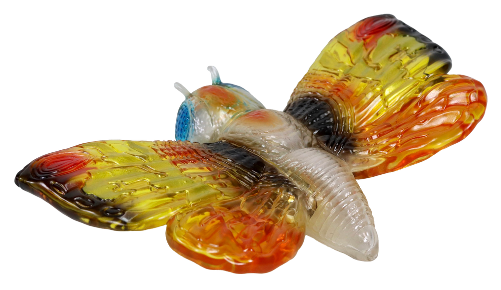レトロタイプソフビに落とし込まれた非常にかわいらしいフォルムのモスラを、クリア素材にてモスラらしいカラーリングで彩色。