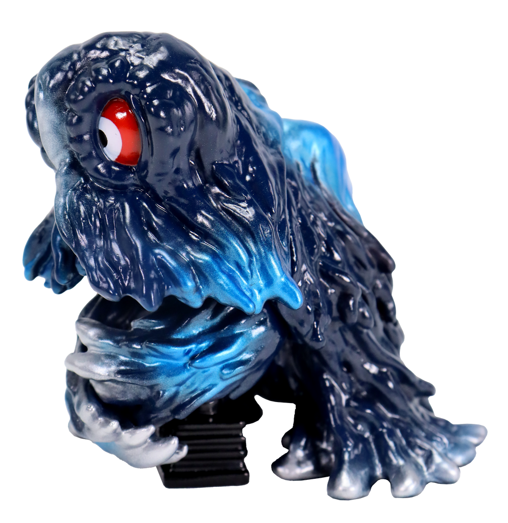 「煙突ヘドラ」が「ゴジラブルーVer.」にて登場!!レトロソフビの定番とも言える、ゴジラの体色のイメージやレトロ玩具のオマージュ要素などを取り入れた「ゴジラブルー」のカラーリングにより、これまでとはひと味違う印象となっています。暗い体色に赤い目玉とメタリックブルーの彩色が目を引きます。是非お手元にてお楽しみ下さい。
