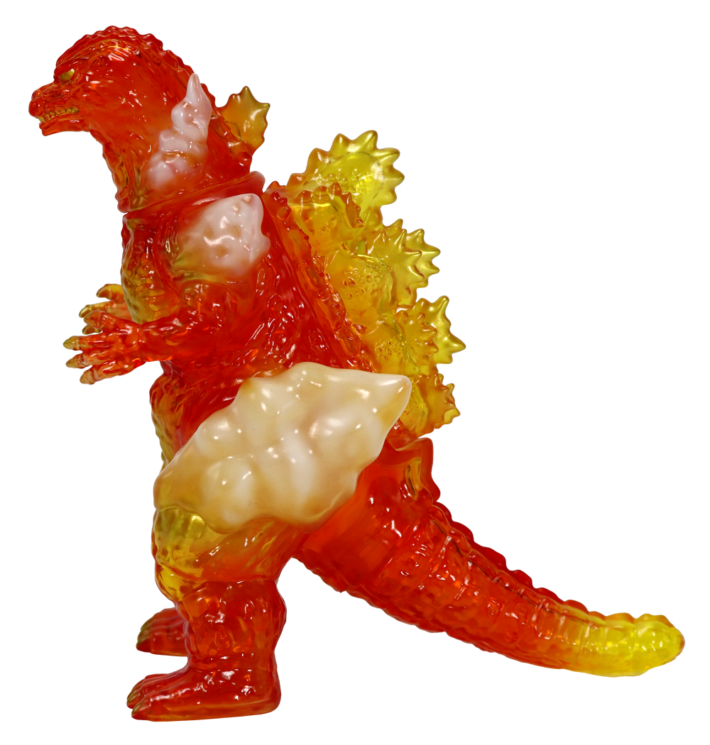 CCPミドルサイズシリーズ ゴジラEXに、体内から噴き上がる煙をも造型しデフォルメソフビ化した「バーニングゴジラ」が登場!!ゴジラ(1995)の特徴を捉えつつ、ソフビ成形を考慮しながらデザインされた、ボリューム感あるデフォルメ造型は必見。「クリアレッドVer.」では、体内温度が1200℃に達しメルトダウンを起こすゴジラのイメージも取り入れた鮮やかな彩色を、是非お手元でお楽しみください。