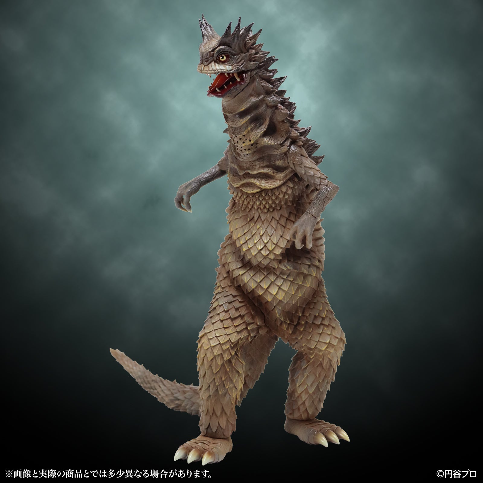 湖から上陸するカットを参考に躍動感のある、全体的に”うねり”を加えたポージングに、特徴的な逆立った鱗の1枚1枚も作り上げられたソフビの限界に挑戦したこだわりの造形です。