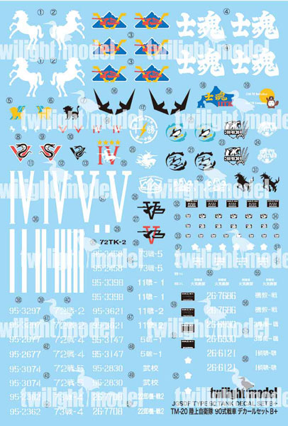 この90式戦車デカールセットB+は、TM-18の90式戦車+74式戦車デカールセットAを補足する形での構成です。